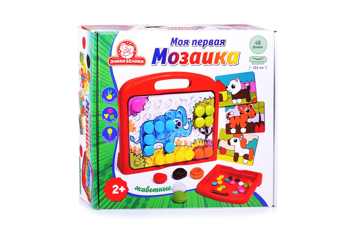 Моя первая мозаика "Животные" (48 фишек, 8 карточек, поле, чемодан)