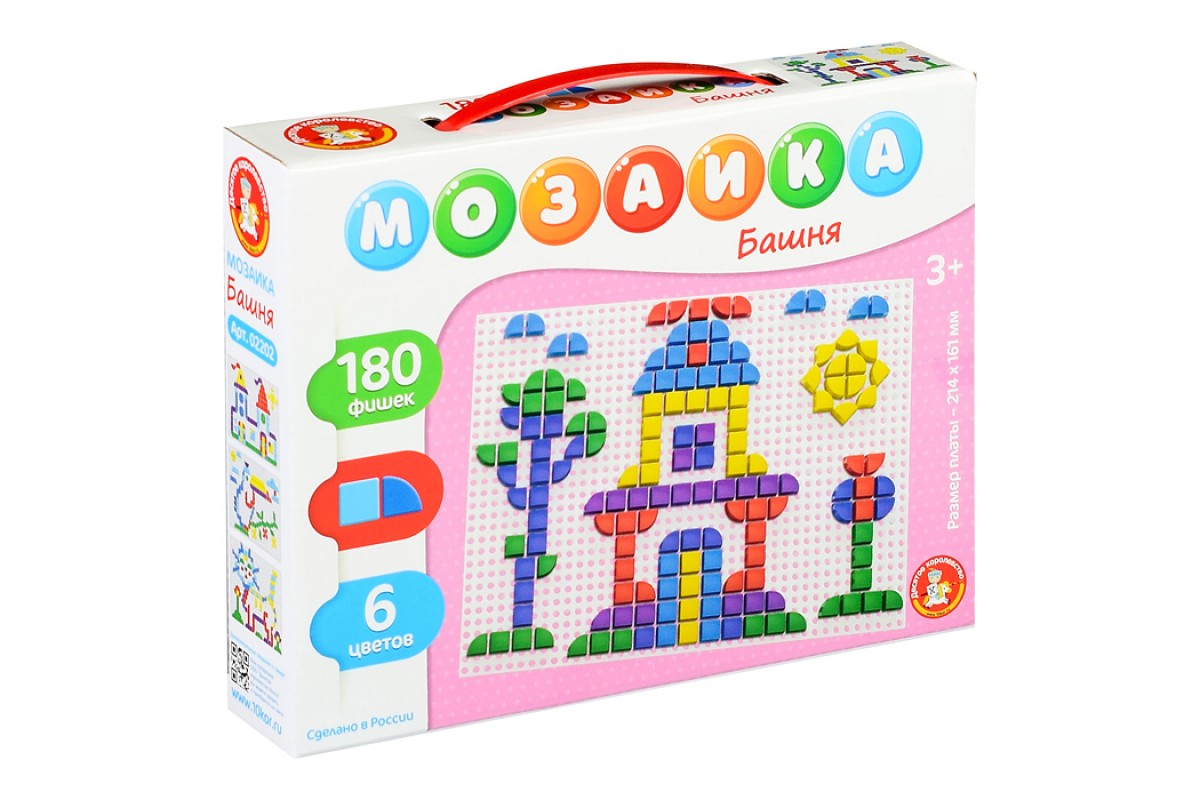 В комплекте плата 214х161 мм., 180 фигурных фишек 20 мм. 6 цветов: красный, зелёный, голубой, жёлтый, синий, фиолетовый.