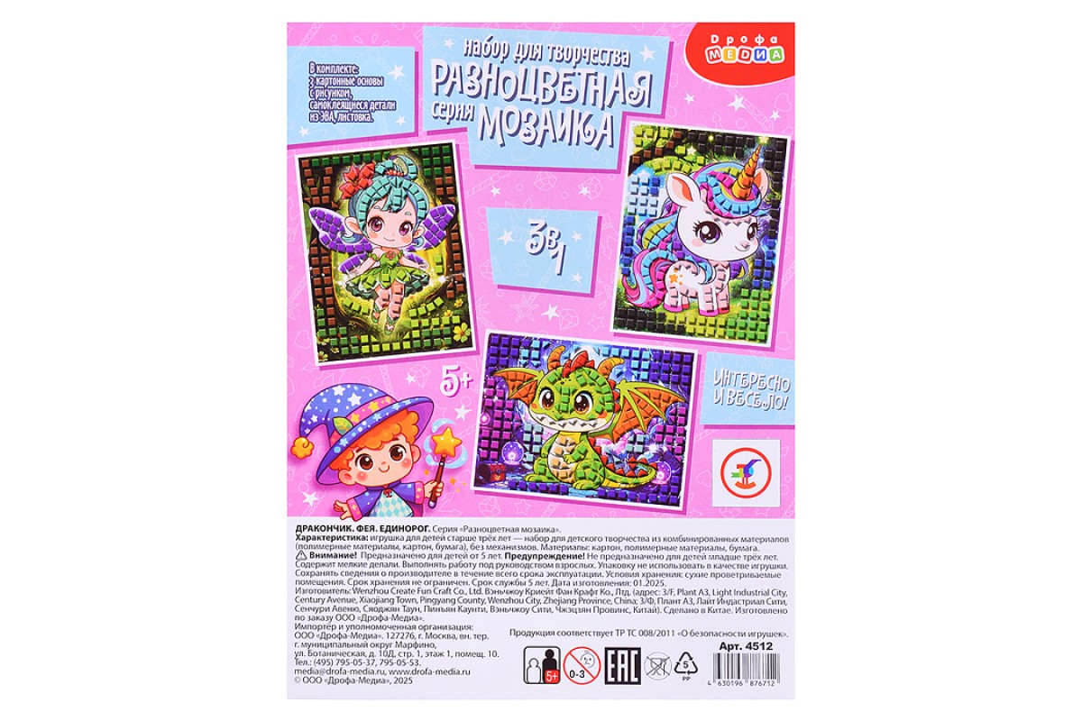 Разноцветная мозаика (3 в 1). Дракончик. Фея. Единорог