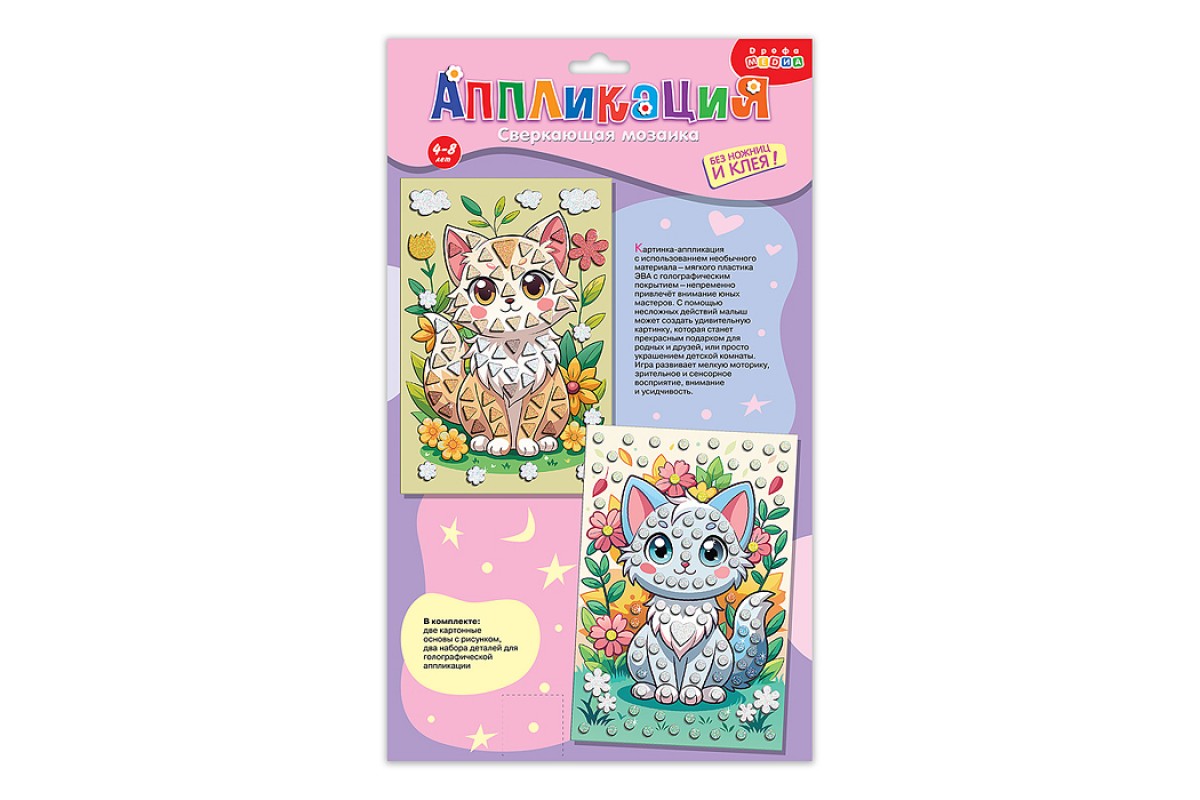 Сверкающая мозаика (2 в 1). Котята и цветы