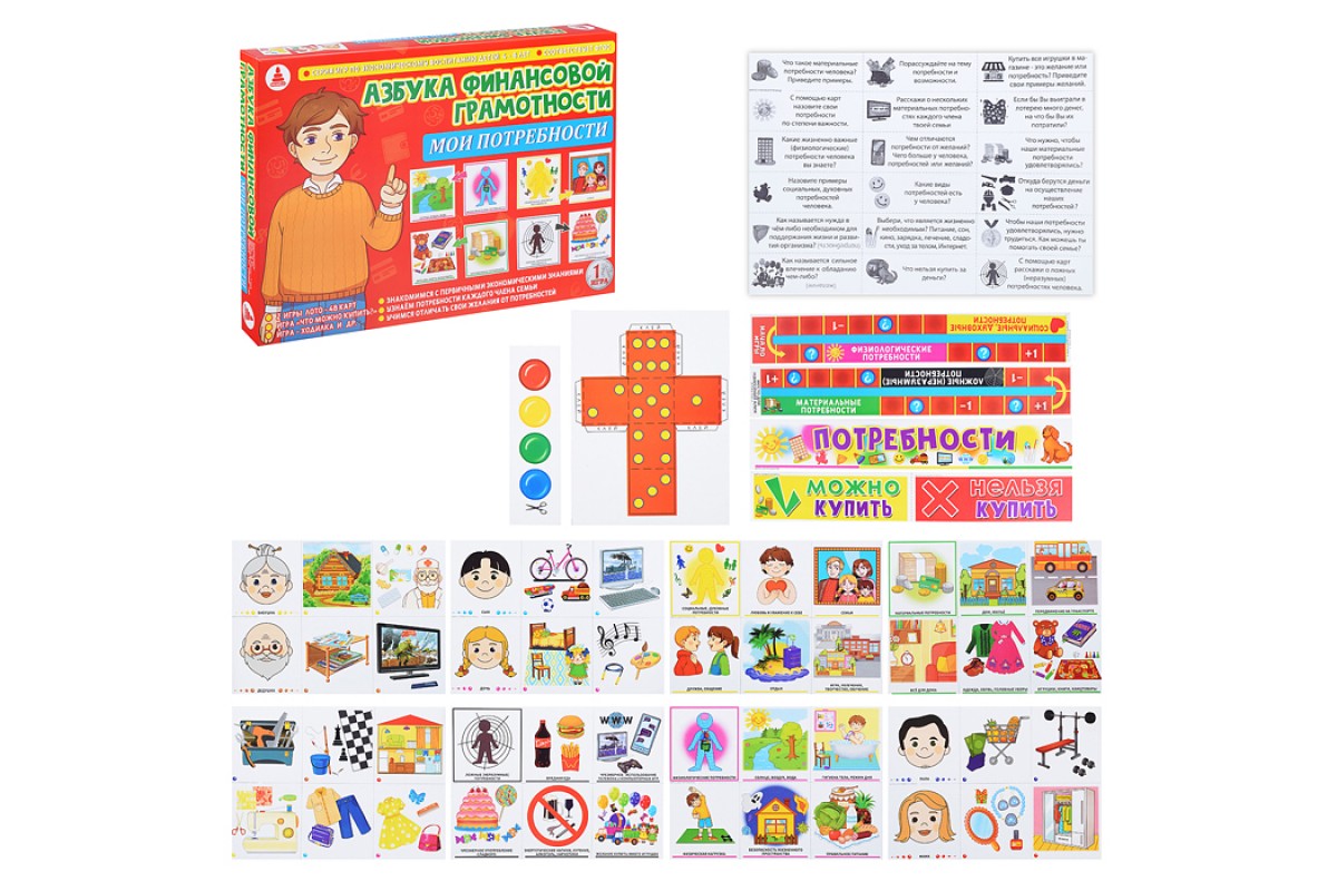 • В игре несколько вариантов: игра лото "Мои потребности", игра лото "Потребности семьи", игра "Что можно купить, а что нельзя?", игра "Викторина", игра-ходилка "Что мне нужно?" с кубиком и фишками и др.