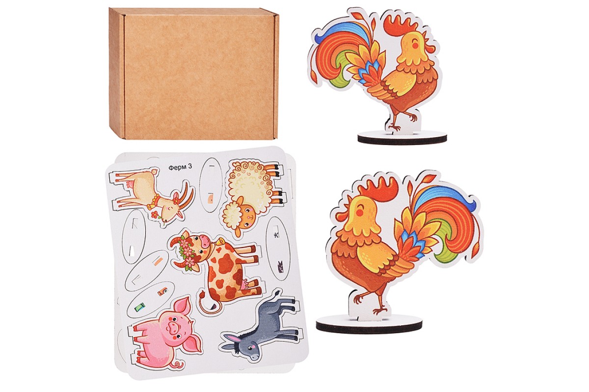 Игровой набор "Ферма" (дерево) крафтовая коробка