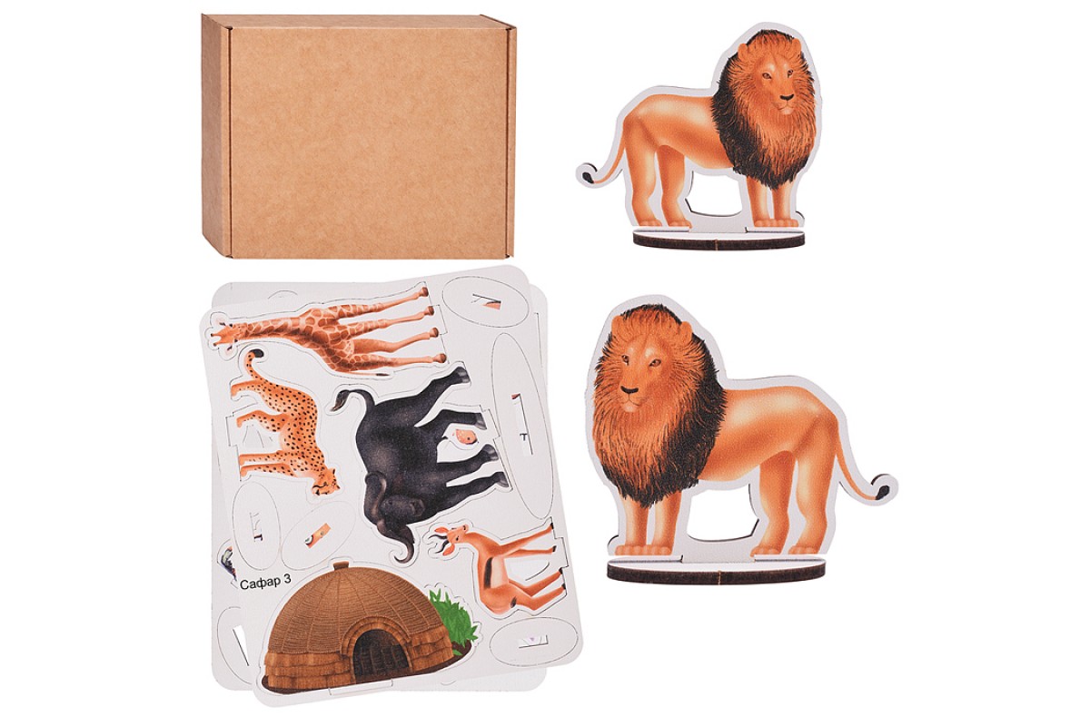 Игровой набор "Сафари" (дерево) крафтовая коробка