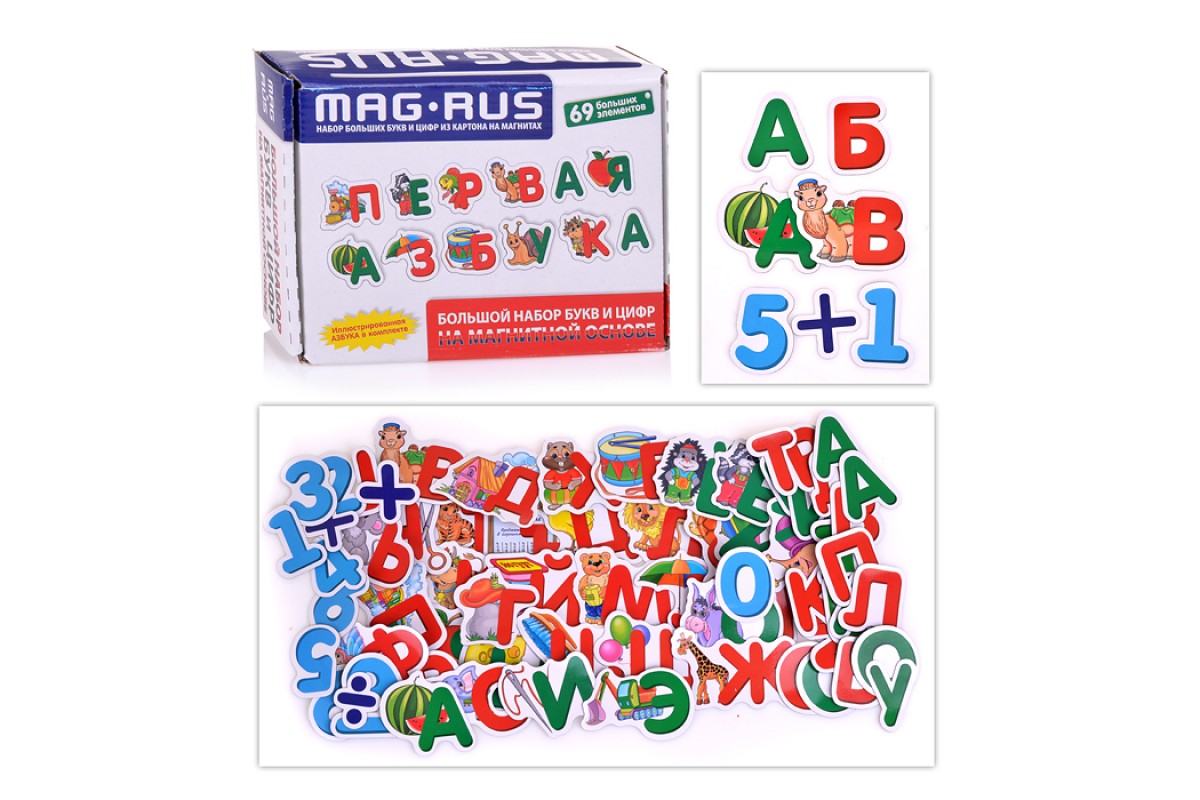Иллюстрированная азбука: Буквы, цифры и знаки. 69 больших магнитных элементов