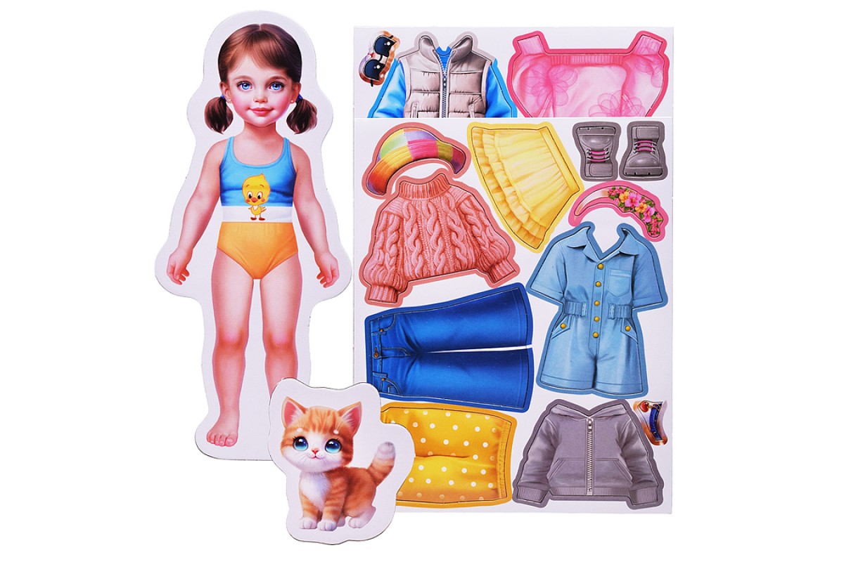 Магнитная игра-одевашка "Девочка с котенком"