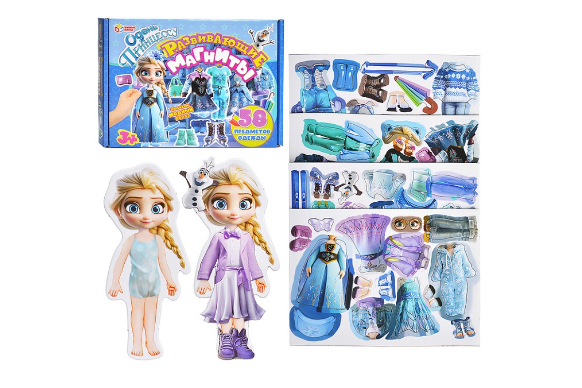 Развивающая игра на магнитах. Одень принцессу. 58 предметов одежды.