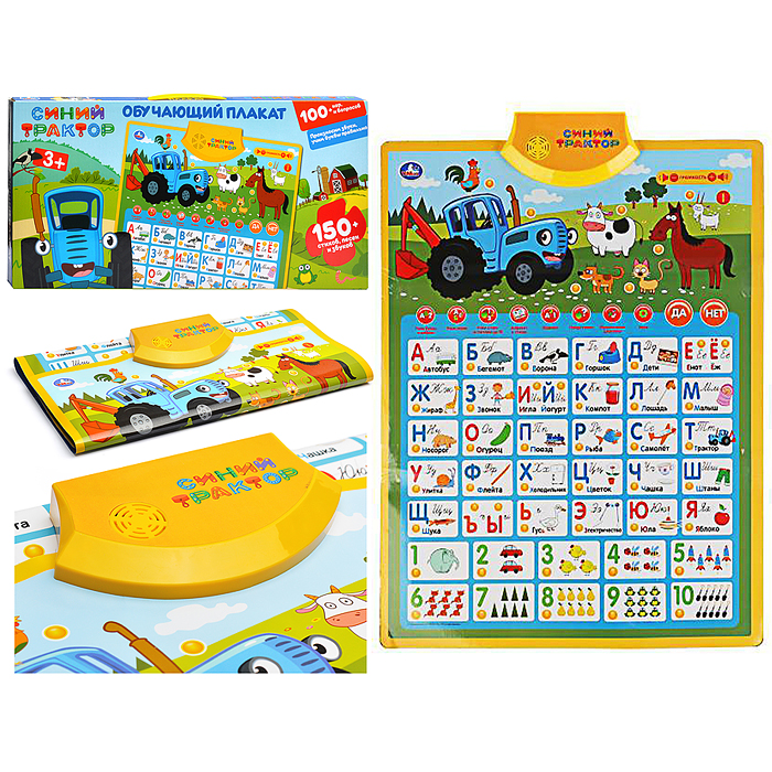 Говорящий плакат "Синий трактор" Азбука и счет (160 стихов,игр,звуков, песен, бат.) в коробке