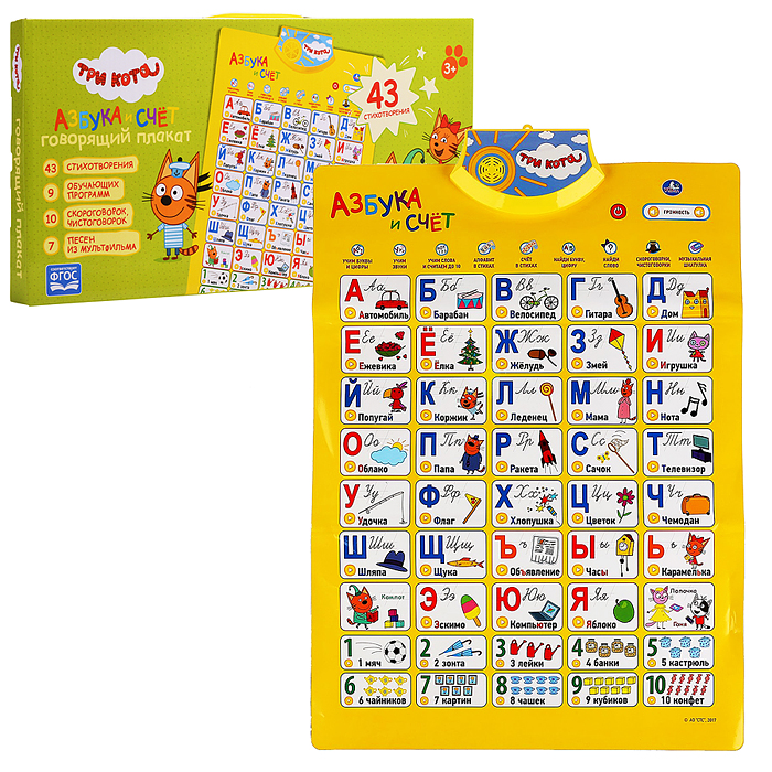 Говорящий плакат. Азбука и счет "Три Кота" в стихах,10 скороговорок,7 песен