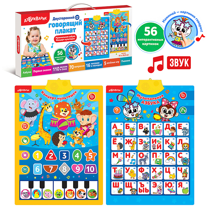 Музыкальная азбука Концерт мультяшек (Двусторонний говорящий плакат)