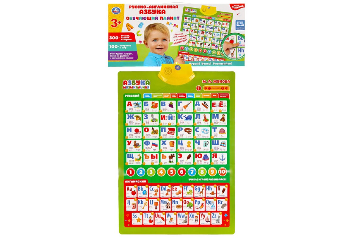 Говорящий плакат Жукова М.А. (русско-английская азбука,300+стихов, 100+вопросов, игр)