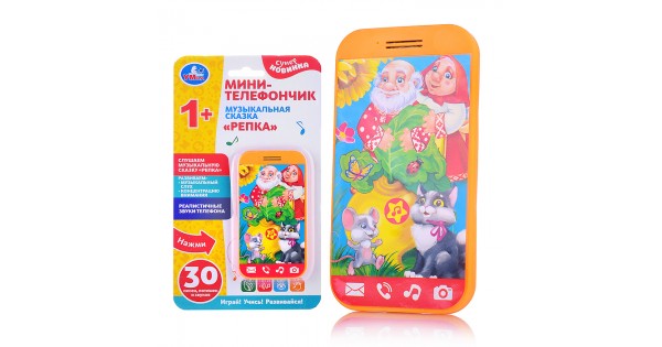 Обучающий мини-телефончик Репка (30 песен, потешек,звуков, бат.) блистер