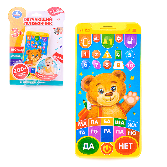 Телефон обучающий телефончик. Cкоро в школу (200 песен, заданий, звуков) на бат,