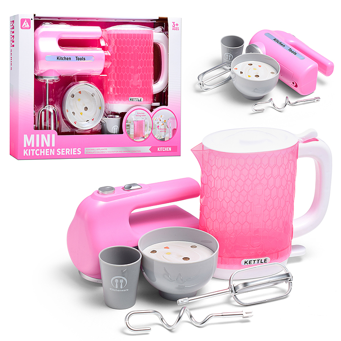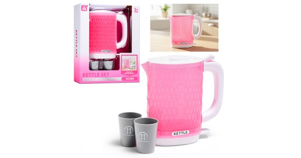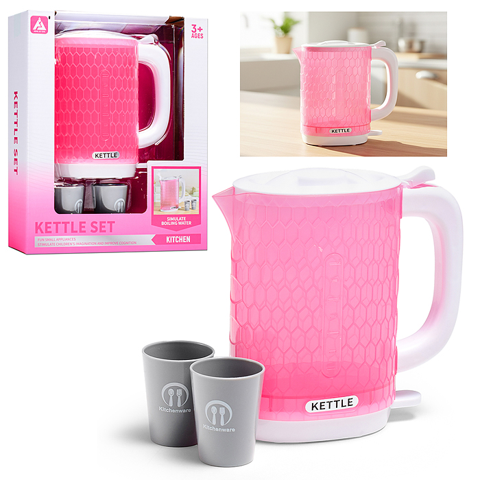Бытовая техника "Электрический чайник с кружками"в коробке (цвет розовый)