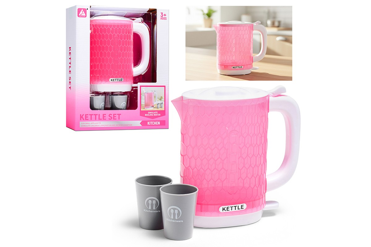 Бытовая техника "Электрический чайник с кружками"в коробке (цвет розовый)