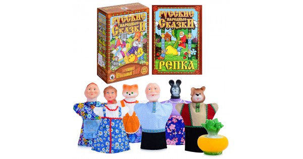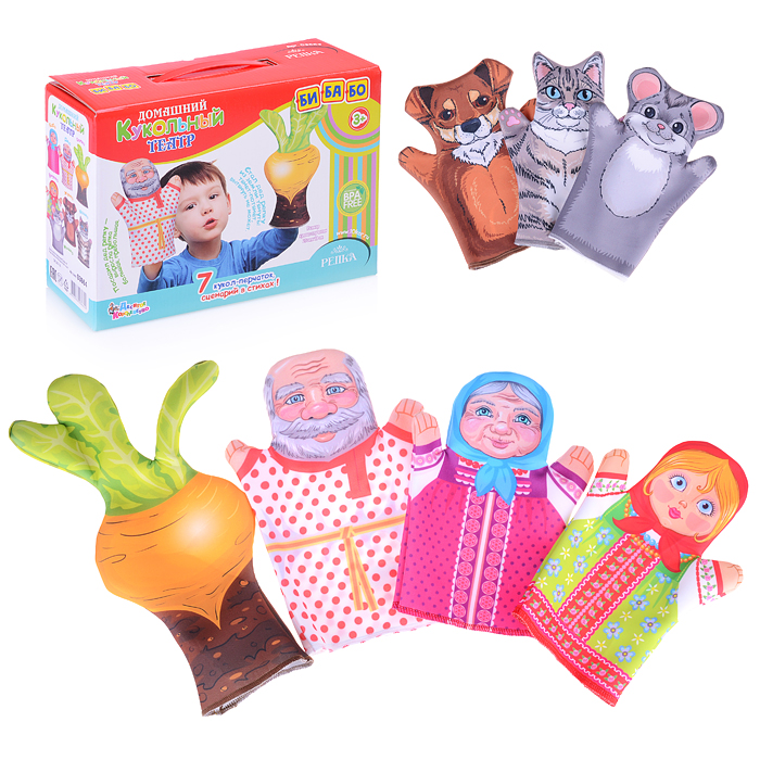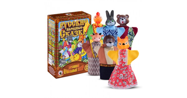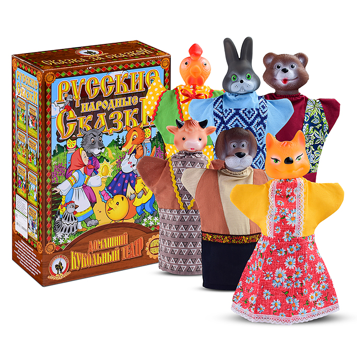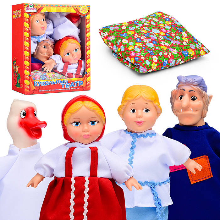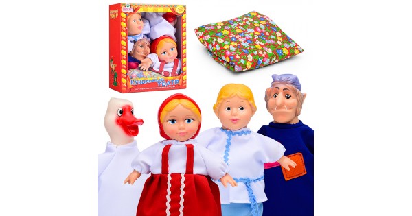 Кукольный театр 4 персонажа с ширмой №4. Фигурки из ПВХ в наборе