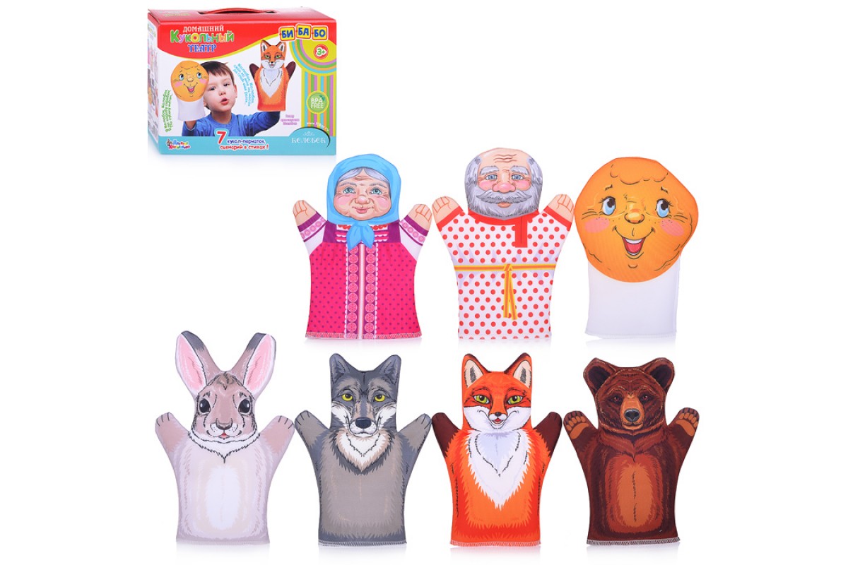 Домашний кукольный театр "Колобок" (7 кукол-перчаток)