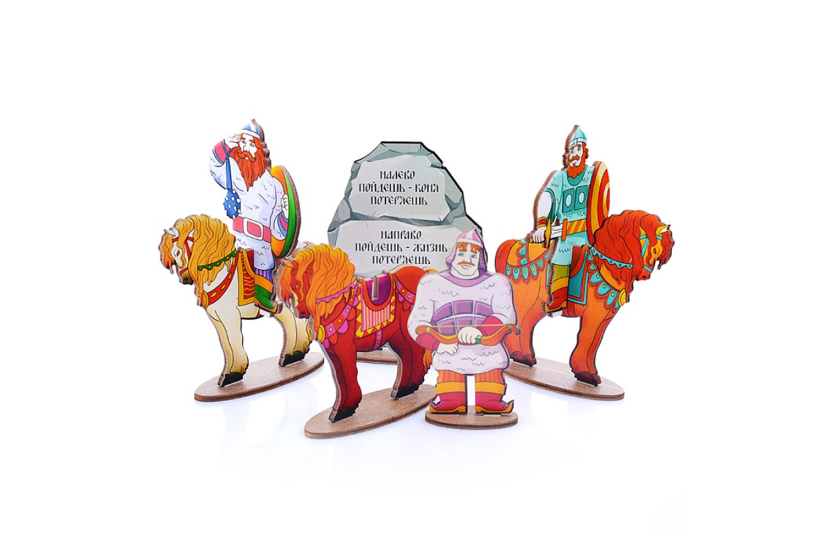 - 7 элементов (3 коня, 3 богатыря, камень).