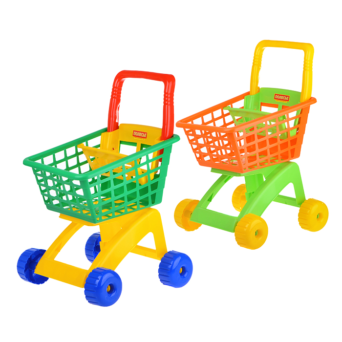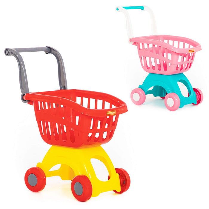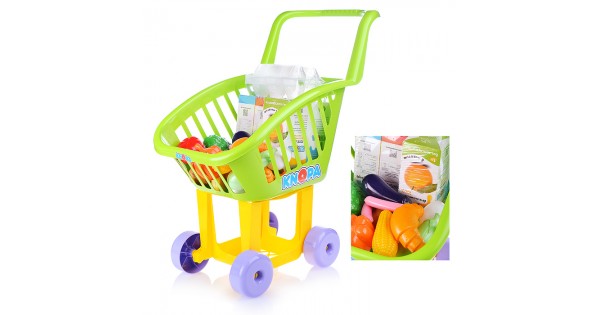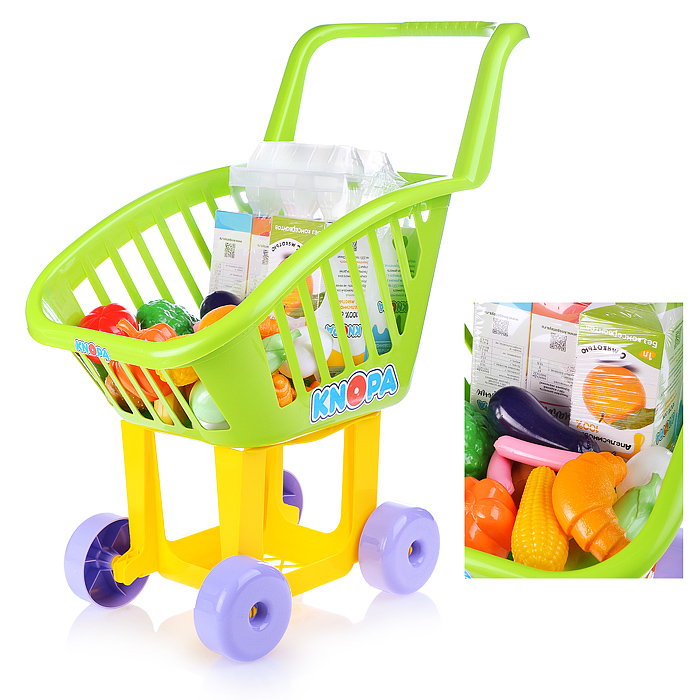 Тележка для маркета "Мини" + набор продуктов №3 (6 элементов) (в сеточке)