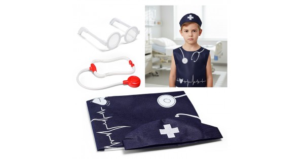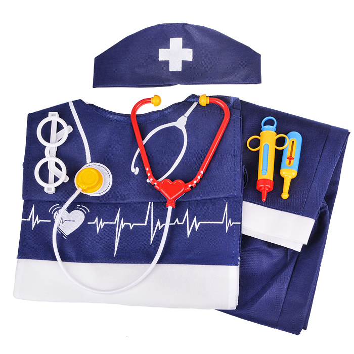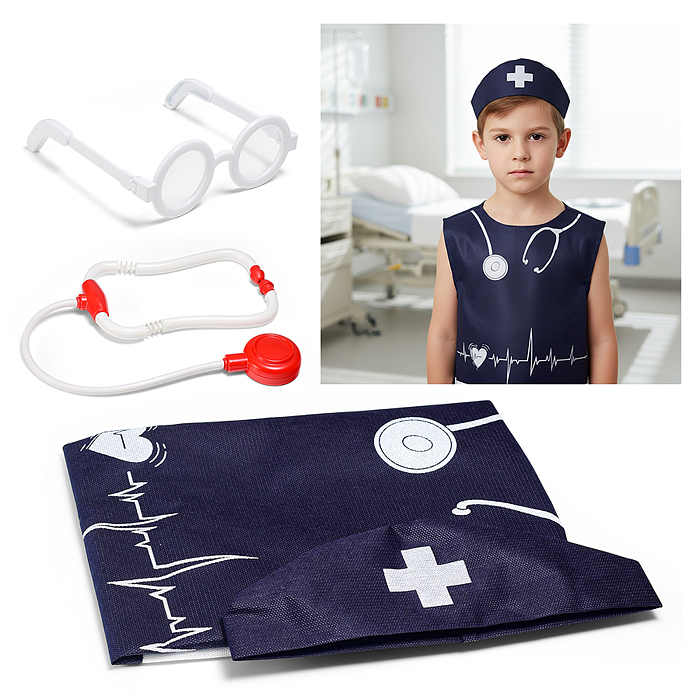 Набор "Медик" из 4 предметов: накидка, колпак, стетоскоп, очки синий