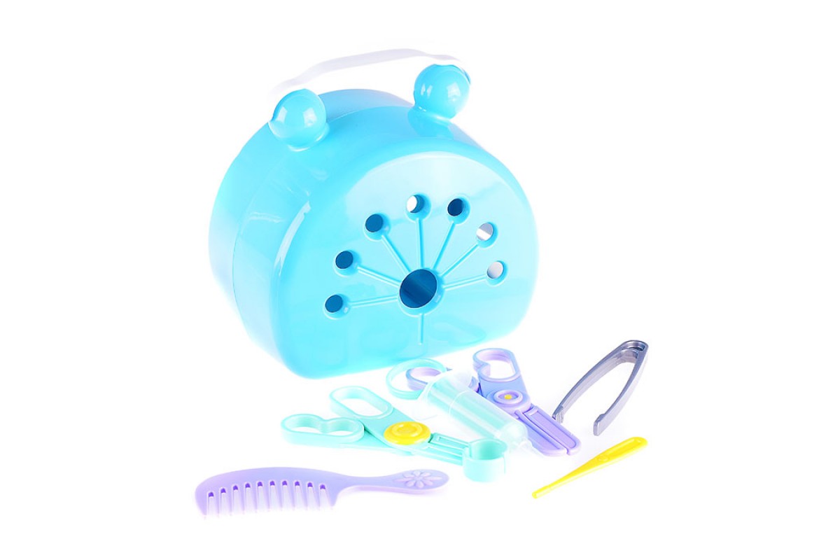 В комплект набора также входят: расчёска, пинцет, термометр, шприц, щипцы, ножницы.