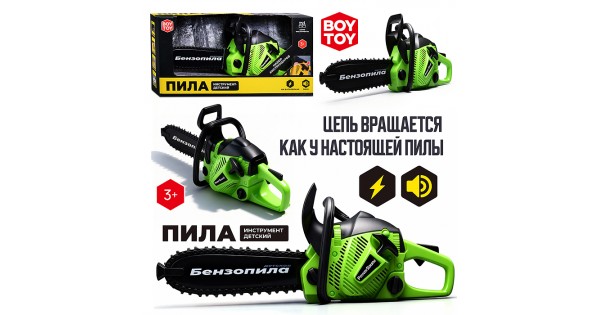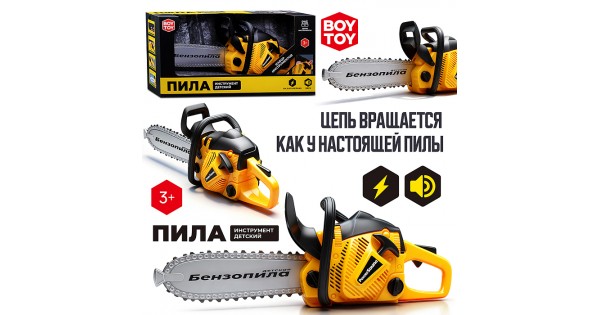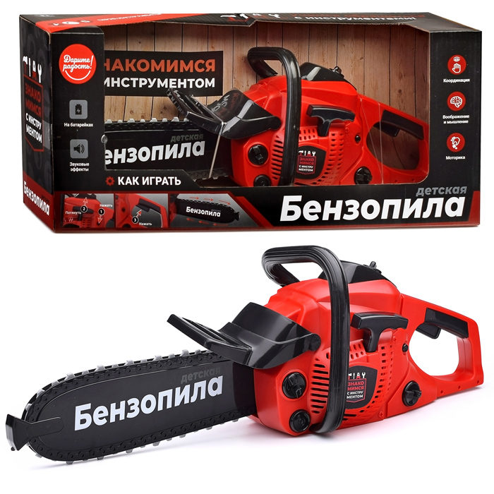 Детская бензопила, звуковые эффекты, работает от батареек, в коробке