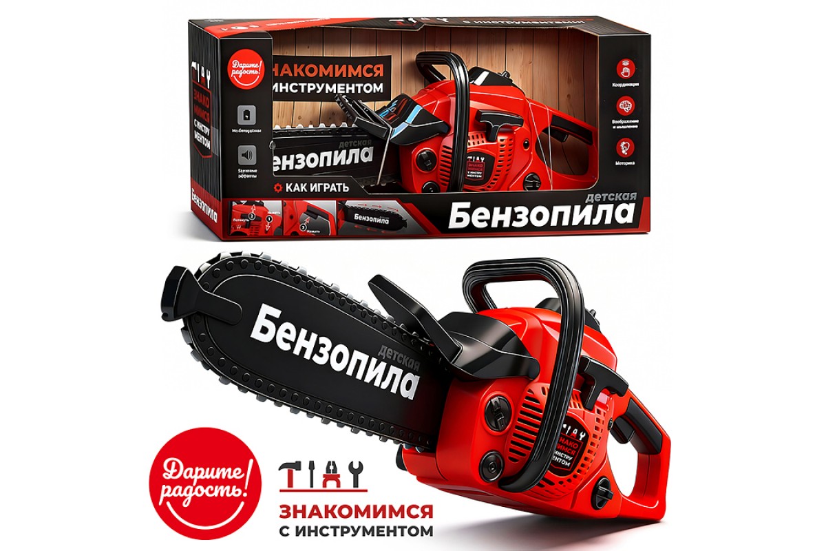 Детская бензопила, звуковые эффекты, работает от батареек, в коробке