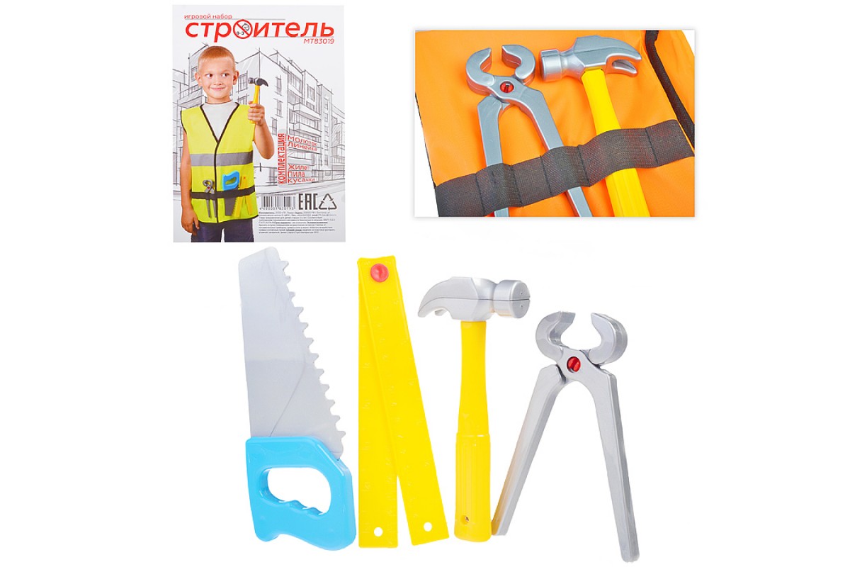 Набор строителя (жилет, молоток, линейка, пила, кусачки)