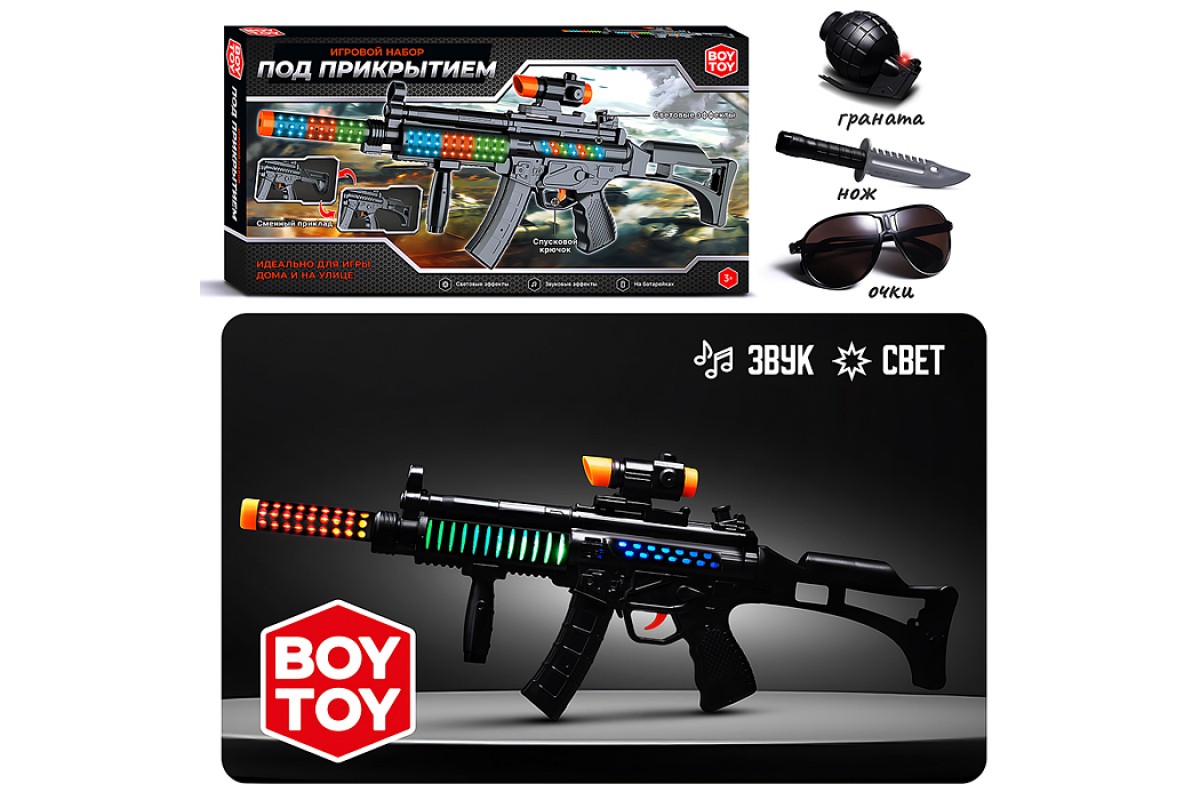 Набор полицейского "Под прикрытием" (автомат,очки,граната,нож) в коробке