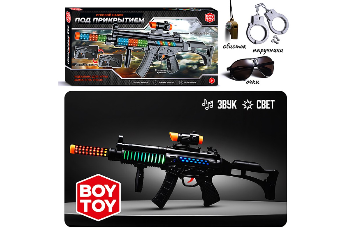 Набор полицейского "Под прикрытием" (автомат,очки,свисток,наручники) в коробке