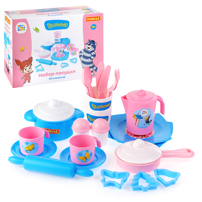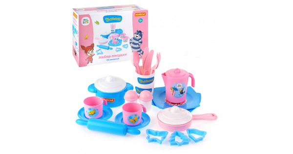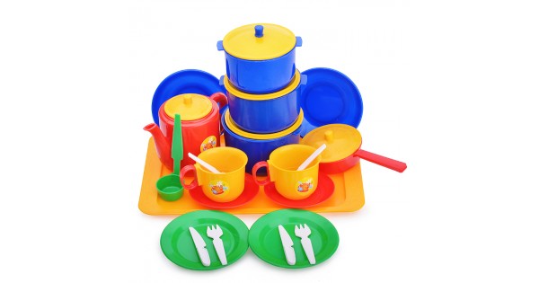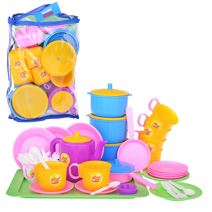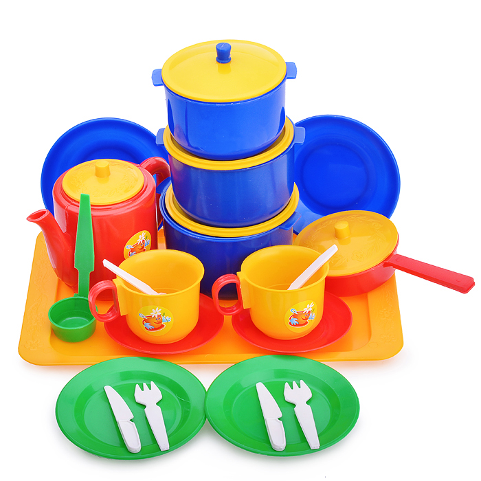 Набор детской посуды "Хозяюшка" с подносом на 4 персоны (V6) (29 элементов) (в сеточке)