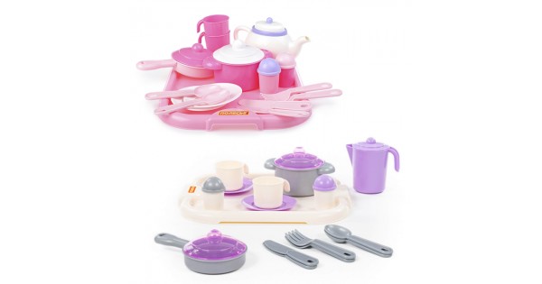 Посуда для кукол "Хозяюшка" (больш.набор-14 предметов на подносе)