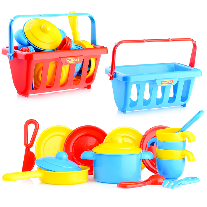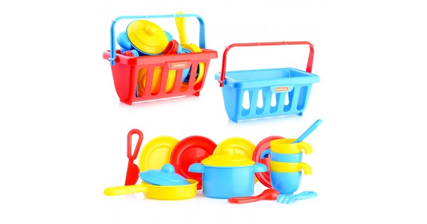 Набор детской посуды "TOP chef" с корзинкой №2 на 4 персоны (в сеточке)