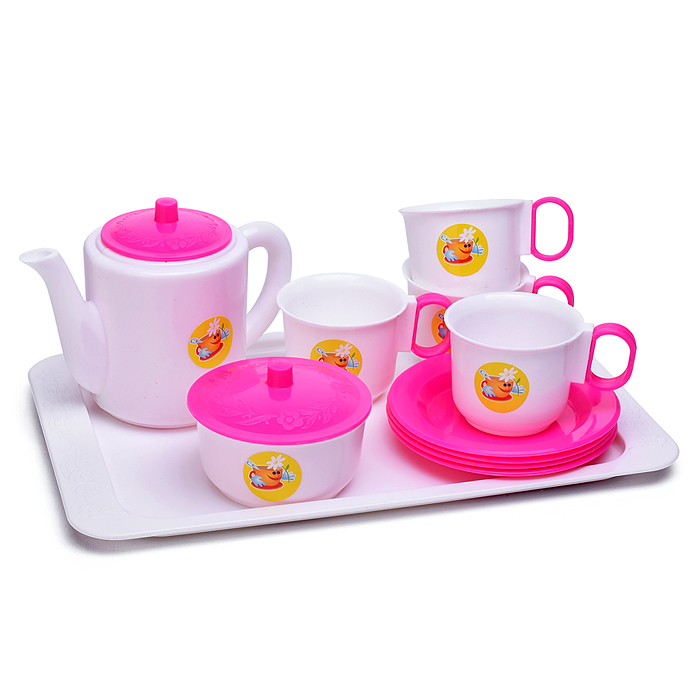 Набор детской посуды "Настенька" с подносом на 2 персоны (19 элементов) (в сеточке)