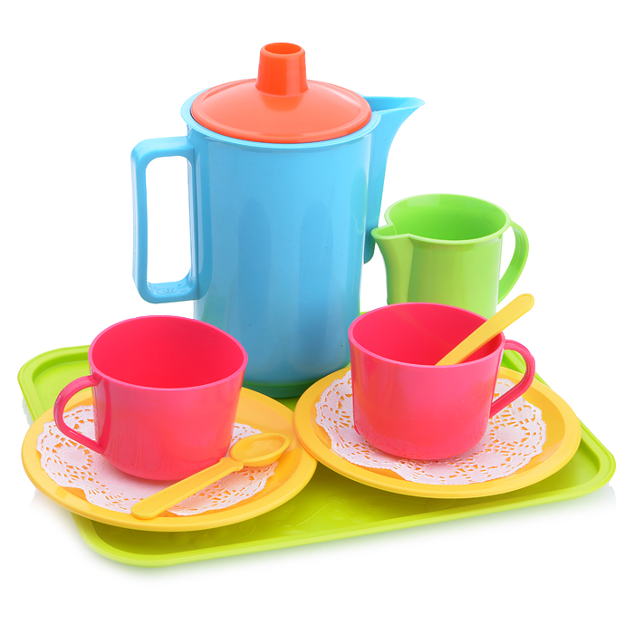 Набор детской посуды "Настенька" с подносом на 2 персоны (19 элементов) (в сеточке)