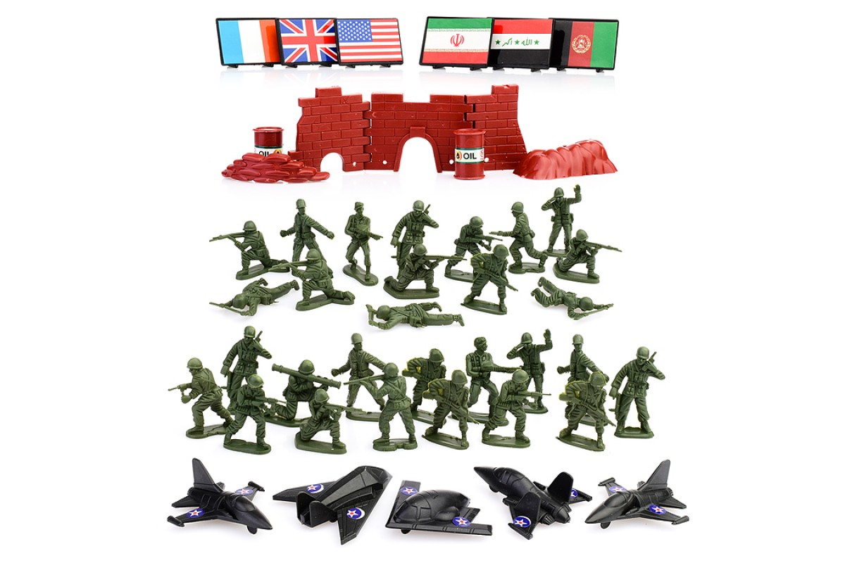 • В наборе: фигурки солдат, флаги, воздушный транспорт, элементы ограждения.