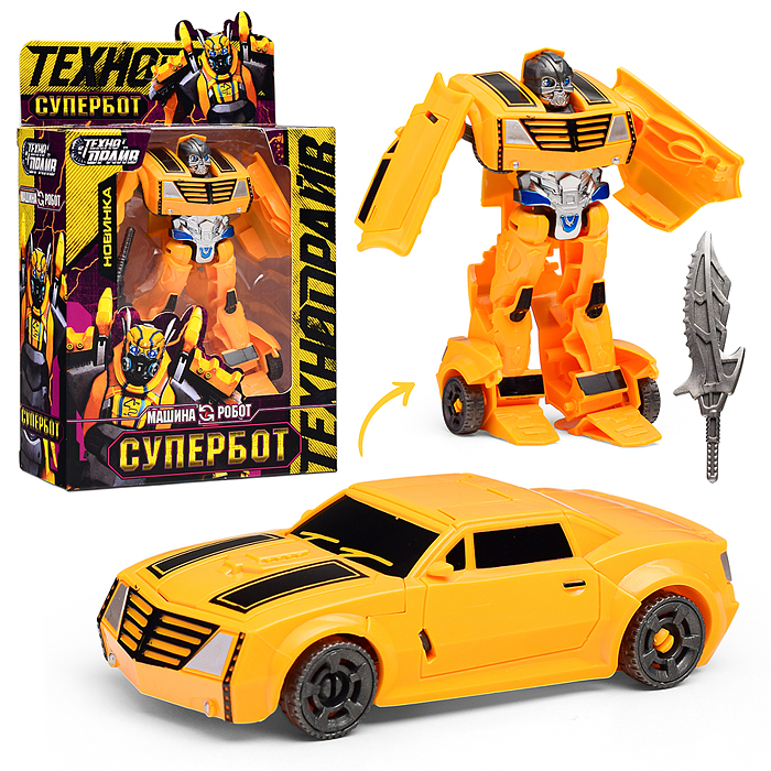 Трансформер 2в1 "Робот-автобус" цвет жёлтый, BOX 21,8х17,5х9,7см