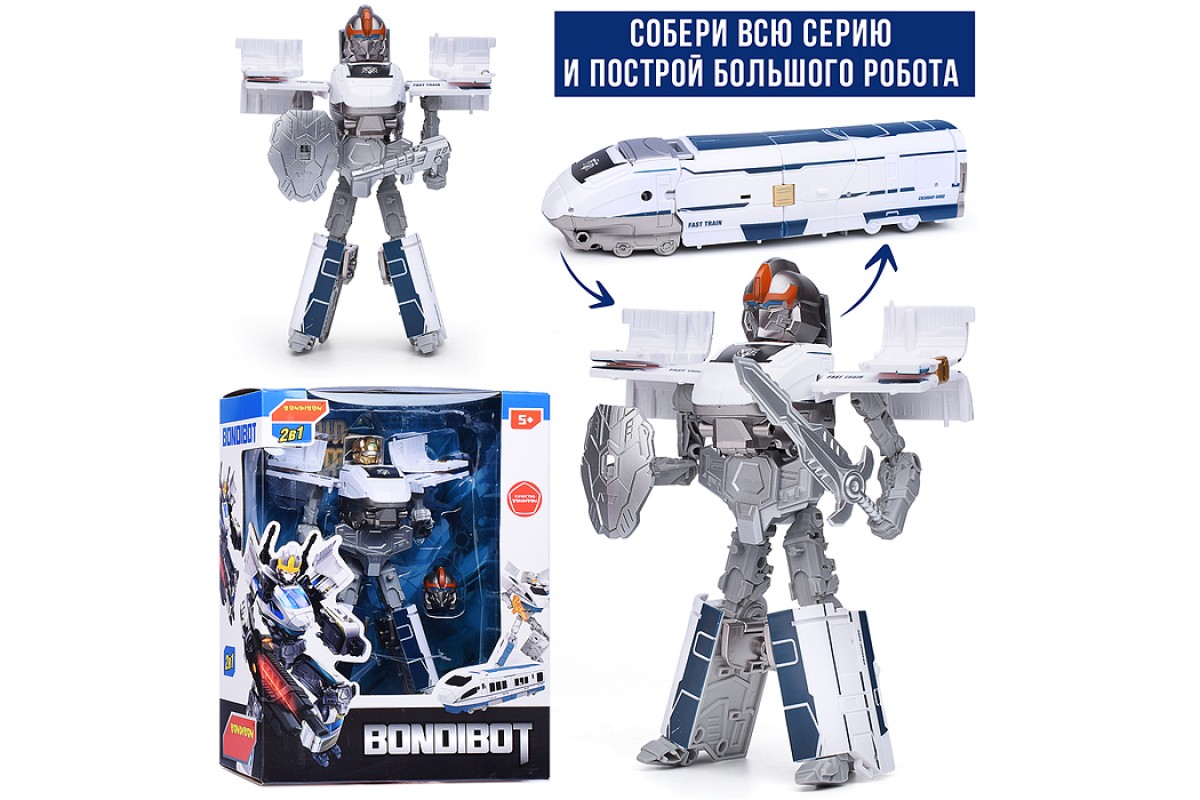 Трансформер 2в1 "Робот-поезд" цвет голубой, BOX 27,6х21,3х10,9см