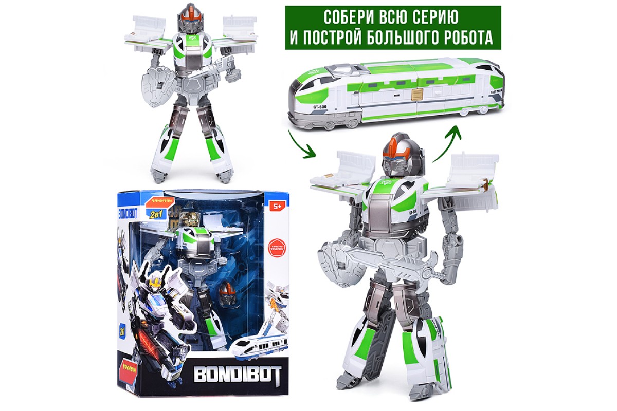 Трансформер 2в1 "Робот-поезд" цвет зелёный, BOX 27,6х21,3х10,9см