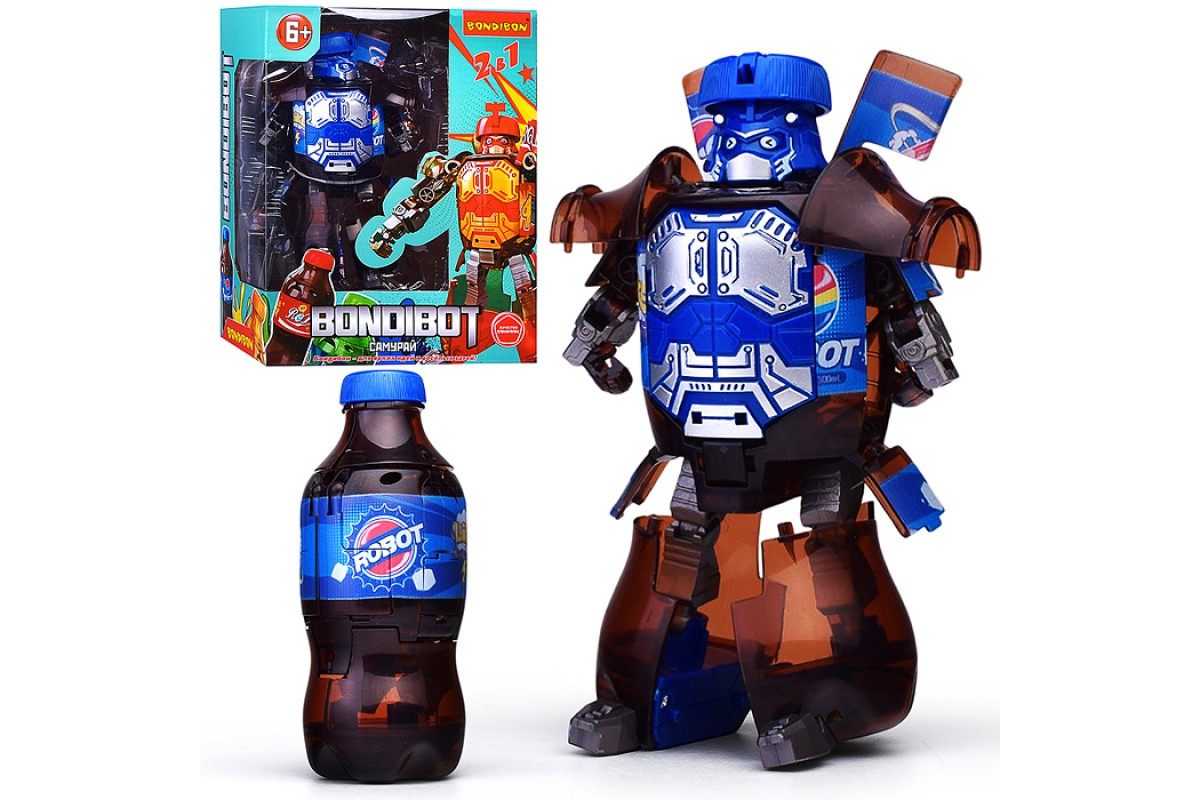 Трансформер "Бутылка-робот" 2в1, Самурай, ВОХ, цвет синий