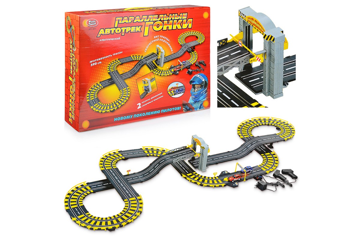 • Трек длиной 590 см имеет 2 полосы движения и имитирует настоящую автотрассу со множеством виражей и препятствий.