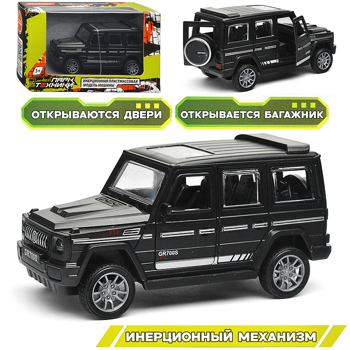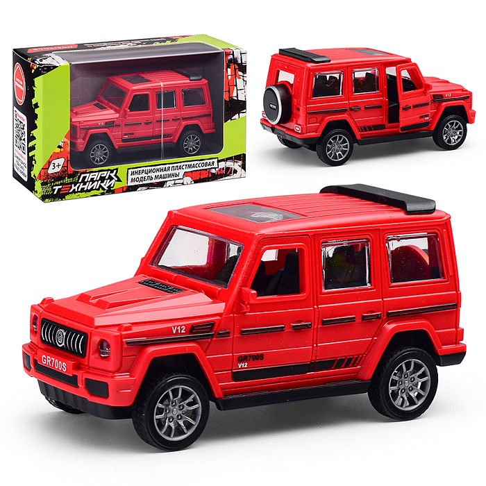 Машина пласт. инерционная, открыв.двери и багажник,"Парк Техники", размер 12,2х5,0х5,5 см, ВОХ, джип красный.