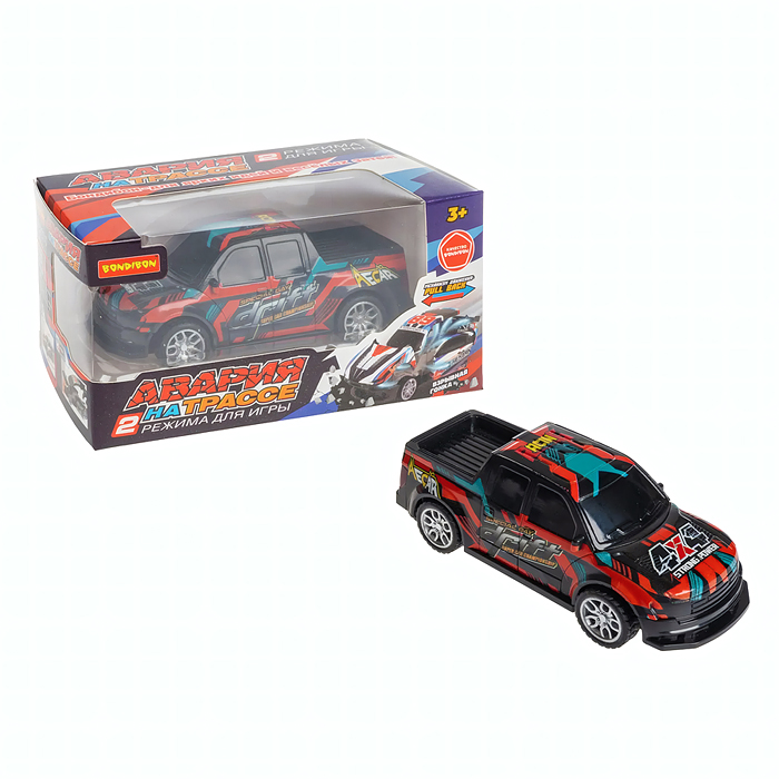 Машинка пластмассовая инерционная "Авария на трассе" Пикап (pull back) ВОХ 15,2х7,5х7,5см,
