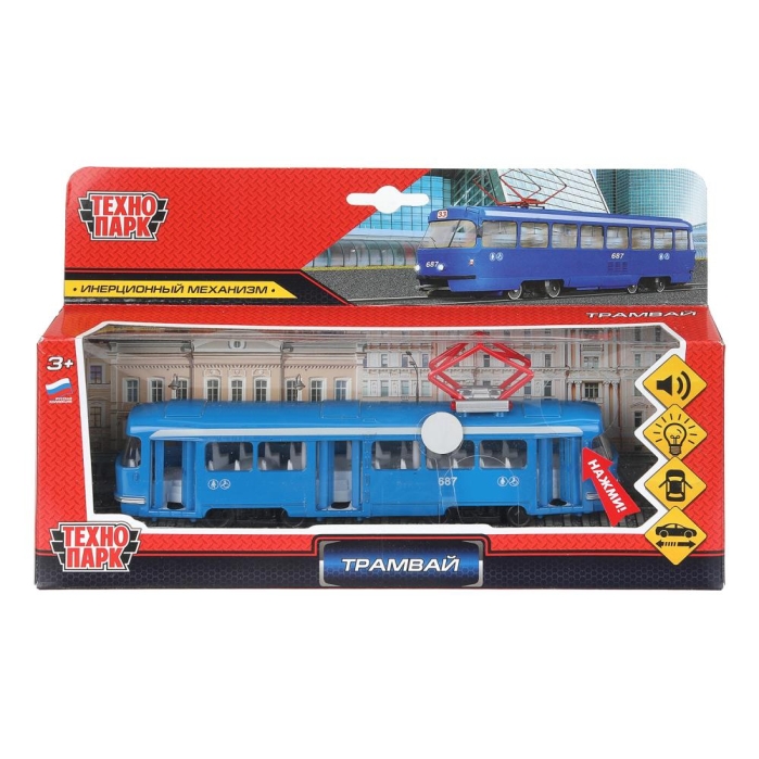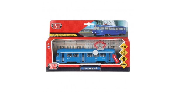Машина металл Трамвай 18 см, (свет+звук, открыв. двери) инерц.