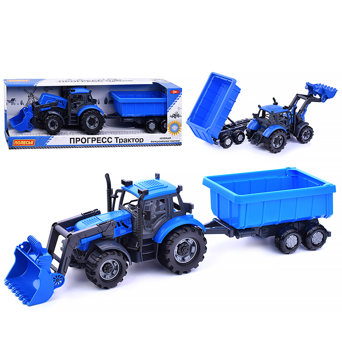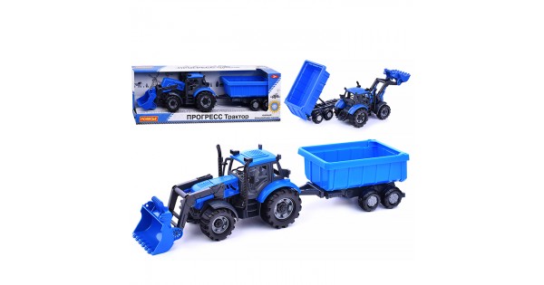 Трактор "Прогресс" с прицепом и ковшом инерционный (синий) (в коробке)