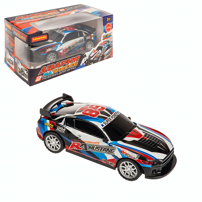 Машинка пластмассовая инерционная "Авария на трассе" Гонка спорт (pull back) ВОХ 15,2х7,5х7,5см,