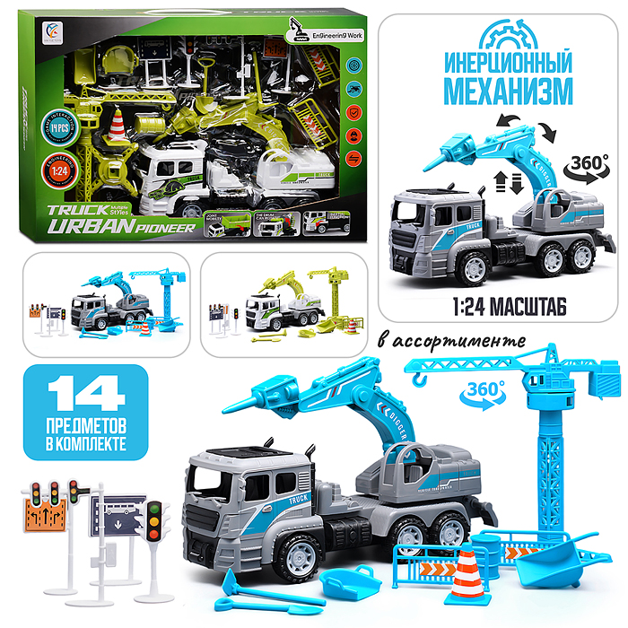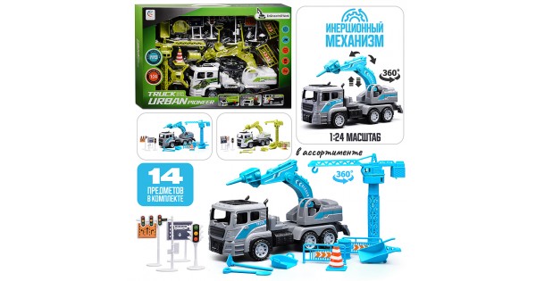 Машинка пластмассовая инерционная "Авария на трассе" Пикап (pull back) ВОХ 15,2х7,5х7,5см,