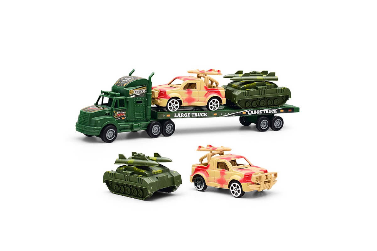 Автовоз "Военный" с танком и машиной, под колпаком