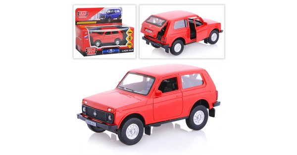 Машина металл LADA 4x412см, (открыв. двери, красный) инерц. в коробке