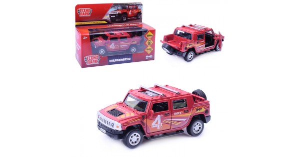 Машина металл Hummer H2 Pickup Спорт, 12 см, (двер, багаж, красный) инерц, в коробке