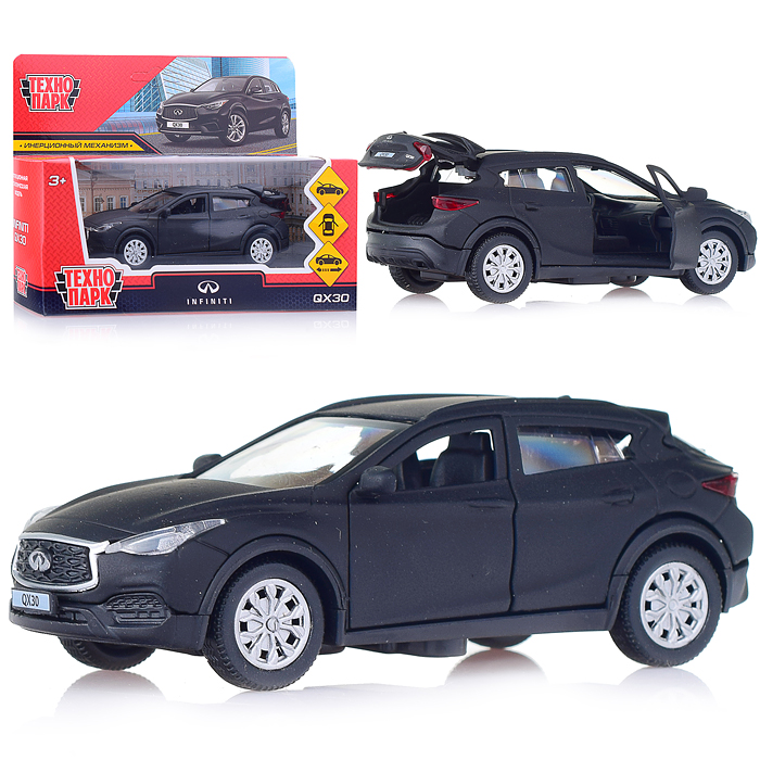 Машина металл Infiniti QX30 матовый 12см, (открыв.двери, черный) инерц, в коробке
